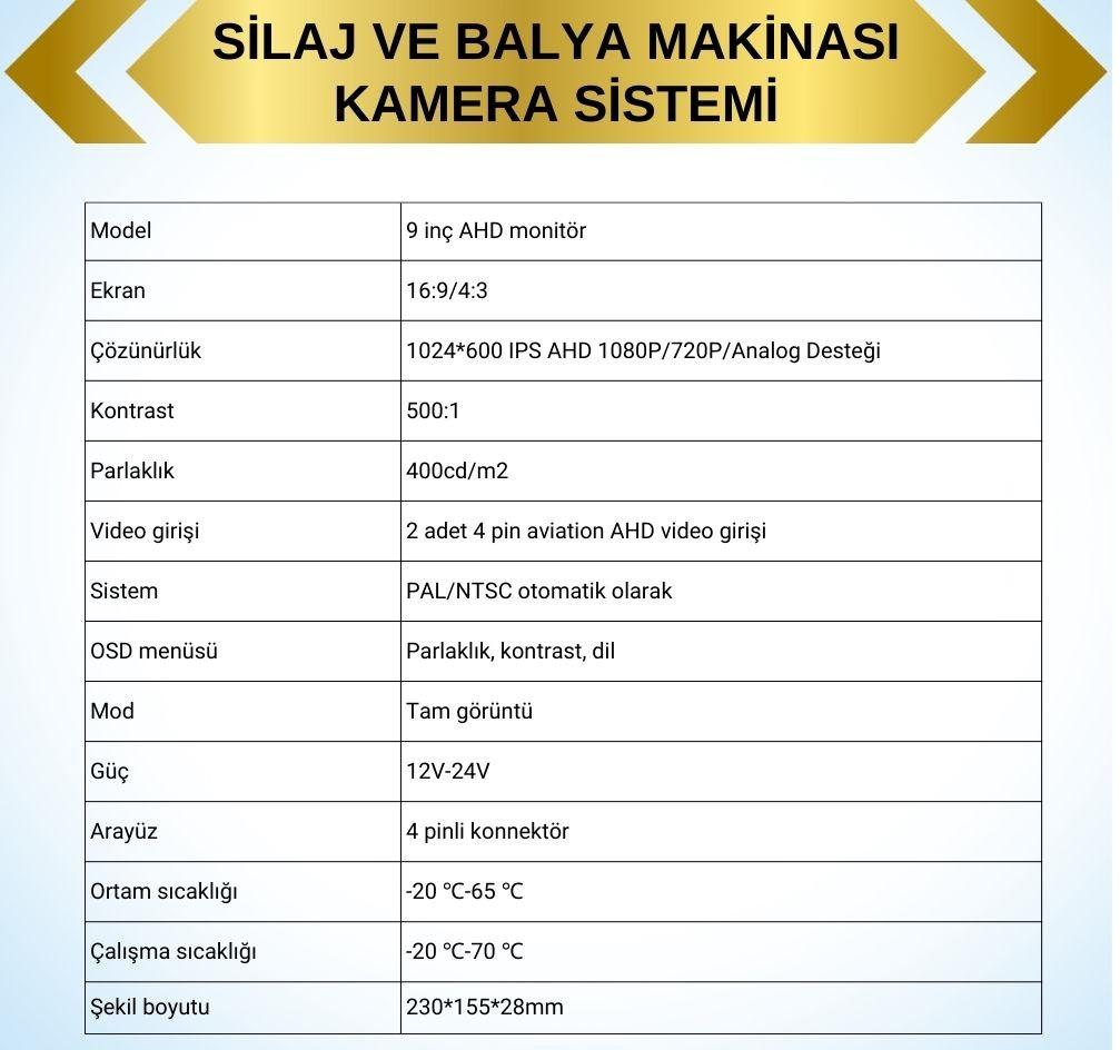 ve Silaj Makinaları için Kamera Sistemi AHD 1080P Full HD Tak Kullan Pratik
